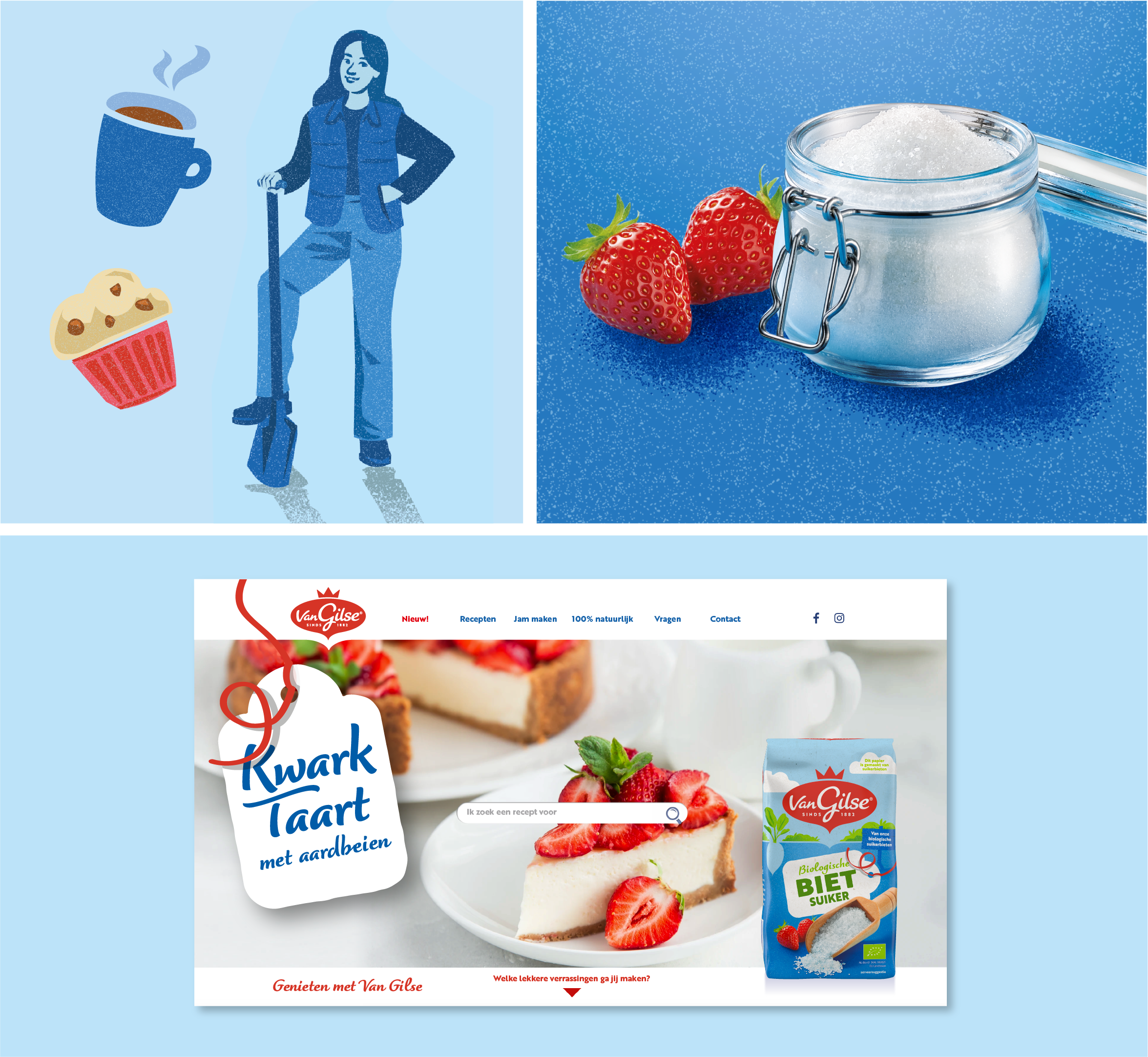 De suikerbiet kreeg de hoofdrol als held van de verpakking. Dit benadrukt de 100% natuurlijke herkomst en verbindt het hele assortiment visueel via een horizontale lijn die een bietenveld voorstelt. Zelfs het Van Gilse-logo kreeg een subtiele metamorfose tot een biet.
